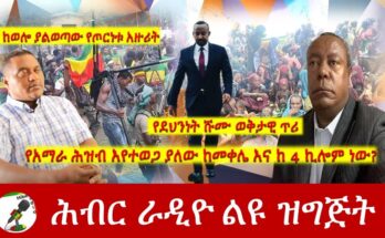 Home / News / RADIO PROGRAMS / Videoለአብይ ተያይዞ መውደቅ ወይስ የኃይለማርያምን መንገድ መምረጥ ይቀላል? Hiber Radio with Elias Aweke Oct 17,2021|Ethiopia October 17, 2021October 17, 2021 - Leave a Comment Read More