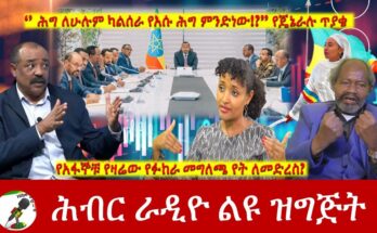 Home / News / RADIO PROGRAMS / Videoእርምጃው የአፓርታይድ ነው በሕግ ማስከበር ሽፋን ማቆላመጥ አይገባም |Hiber Radio with Zenaneh Mekonnen Jun 11,2022 Ethiopia June 11, 2022June 11, 2022 - Leave a Comment Read More